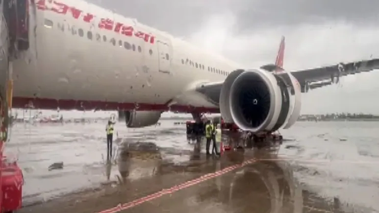 Air India की कोच्चि से मुंबई जा रही फ्लाइट लैंडिंग के समय बड़े हादसे से बाल-बाल बची. भारी बारिश की वजह से विमान रनवे पर ओवरशूट कर गया, लेकिन स्थिति को संभाल लिया गया.