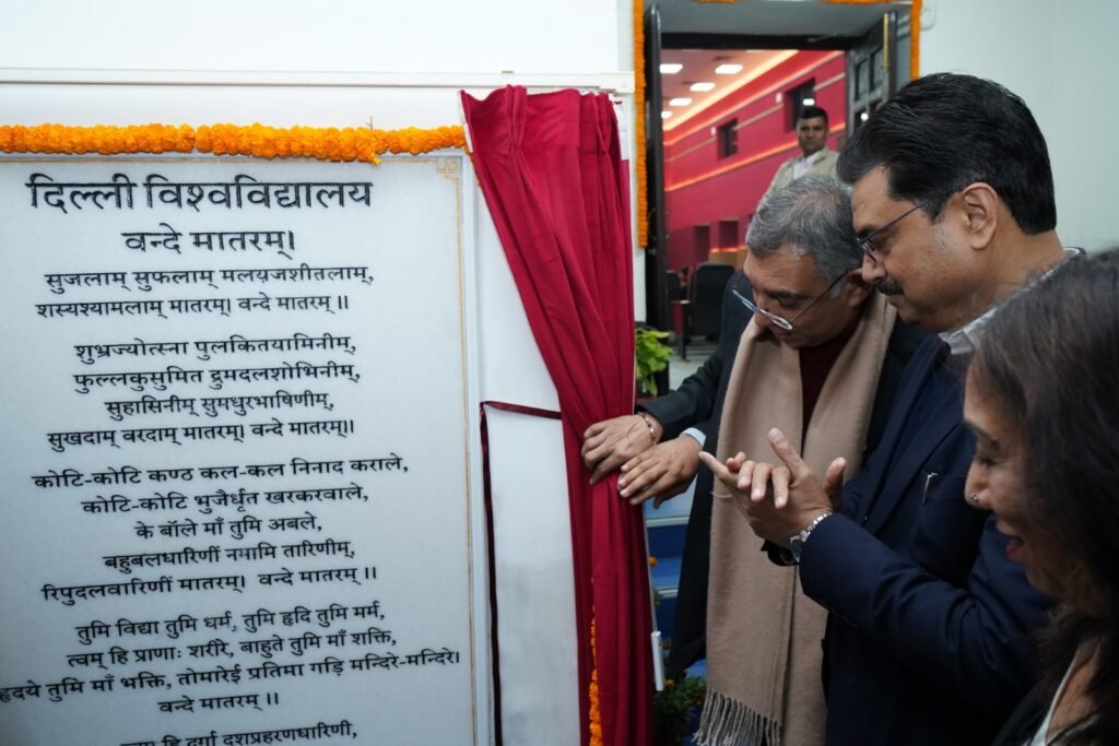 दिल्ली विश्वविद्यालय की फैकल्टी ऑफ आर्ट्स में “वंदे मातरम हॉल” का उद्घाटन मंगलवार को डीयू कुलपति प्रो. योगेश सिंह ने किया। इसके साथ ही हॉल के द्वार पर पूर्ण वन्दे मातरम के शिलालेख का अनावरण भी कुलपति द्वारा किया गया। इस अवसर पर उन्होंने कहा कि वंदे मातरम हॉल अनेकों वर्षों तक प्रेरणा का काम करेगा। कुलपति ने कहा कि वंदे मातरमने भारत के हर संकट में भारत का साथ दिया है। आज देश वंदे मातरम के 150 वर्ष मना रहा है। उन्होंने कहा कि 1948 से लेकर 2005 तक इस हॉल में अनेकों कॉन्वोकेशन हुए और भारत के राष्ट्रपति सहित अनेकों महान विभूतियों ने इस हॉल में अपने अपने कदम रखे। जब भी डीयू का इतिहास लिखा जाएगा तो इस हॉल का इतिहास भी लिखा जाएगा।