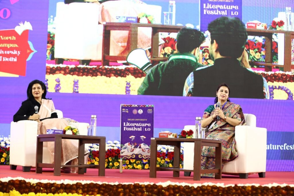 दिल्ली विश्वविद्यालय साहित्य महोत्सव के दूसरे दिन “कहत कबीर” शीर्षक से दास्तानगोई सत्र का आयोजन किया गया। यह सत्र राष्ट्रीय उर्दू भाषा प्रोत्साहन परिषद के सहयोग से आयोजित हुआ। सत्र के मुख्य वक्ता सैयद साजिद आगा ने विश्वविद्यालय द्वारा ऐसे साहित्यिक कार्यक्रमों को एक महत्वपूर्ण सांस्कृतिक पहल बताया। उन्होंने कहा कि संगीतात्मक दास्तानगोई केवल कथा-वाचन नहीं, बल्कि शब्द, स्वर और भाव का संगम है, जो श्रोताओं को इतिहास और परंपरा से जीवंत रूप में जोड़ देती है। इस अवसर पर उनकी टीम ने कबीर वाणी की प्रस्तुति सुर और लय के साथ दी। पैनल चर्चा के दौरान हल्ला बोल कार्यक्रम में जानी मानी टीवी पत्रकार एवं एंकर अंजना ओम कश्यप के साथ डीयूएलएफ़ की कोर्डिनेटर प्रो. दीप्ति तनेजा ने चर्चा की। इस चर्चा में विद्यार्थियों को पत्रकारिता से जुड़े रोचक तथ्य जानने को मिले। इनके अलावा मल्टी पर्प्ज हाल के मुख्य सभागार और ऊपरी हाल में चर्चा के अनेकों सत्र आयोजित किए गए।