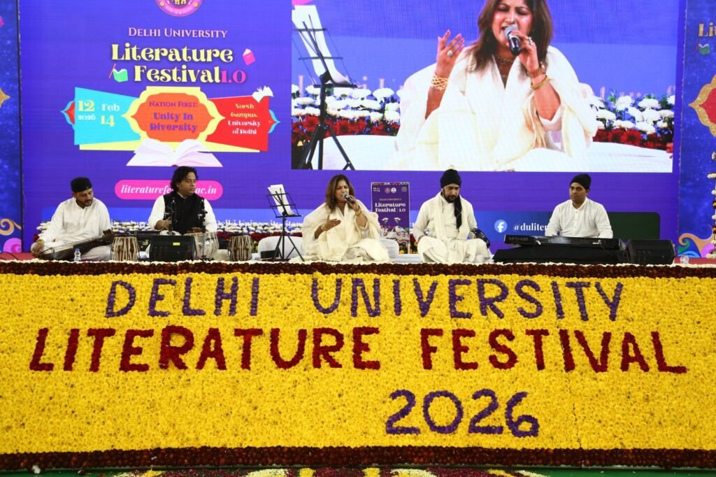 दिल्ली यूनिवर्सिटी लिटरेचर फेस्टिवल के दौरान रग्बी स्टेडियम में डीयू कल्चर काउंसिल ने विश्वविद्यालय के अलग-अलग कॉलेजों के साथ मिलकर रोचक सांस्कृतिक प्रस्तुतियाँ दी। समारोह के दूसरे दिन दिल्ली डीयू रजिस्ट्रार डॉ. विकास गुप्ता, कल्चर काउंसिल के चेयरपर्सन अनूप लाठर, कल्चर काउंसिल के डीन प्रो. रविंदर कुमार, कल्चर काउंसिल के जॉइंट-डीन डॉ. हेमंत वर्मा, स्पोर्ट्स काउंसिल के डायरेक्टर डॉ. अनिल कुमार कलकल और यूनिवर्सिटी लाइब्रेरियन डॉ. राजेश सिंह ने कलाकारों को पुरस्कार प्रदान किए जिसमें 2025 और 2026 में अलग-अलग जाने-माने नेशनल लेवल कॉम्पिटिशन में यूनिवर्सिटी का प्रतिनिधित्व करने वाले विद्यार्थियों को भी सम्मानित किया गया।